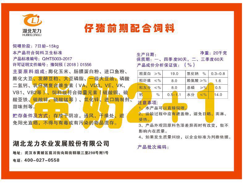 湖北龍力農(nóng)業(yè)發(fā)展股份有限公司坐落于武漢市黃陂區(qū)前川街向陽街群順三里298號附1號。公司成立于2014年6月,公司自成立以來把“創(chuàng)全球最大養(yǎng)豬綜合服務”為企業(yè)愿景。致力于打造教保料品牌”作為公司發(fā)展的明確目標。公司一直致力于豬營養(yǎng)的研究和開發(fā),積極與國內(nèi)外高校和科研機構(gòu)合作,推廣養(yǎng)豬技術(shù)、動物營養(yǎng)新概念,向世界農(nóng)牧企業(yè)學習與合作。公司采用國內(nèi)先進的生產(chǎn)工藝,選擇高精度電子配料秤,高均勻度、無殘留混合機等先進設(shè)備....